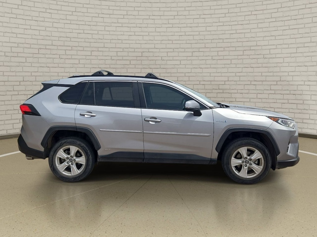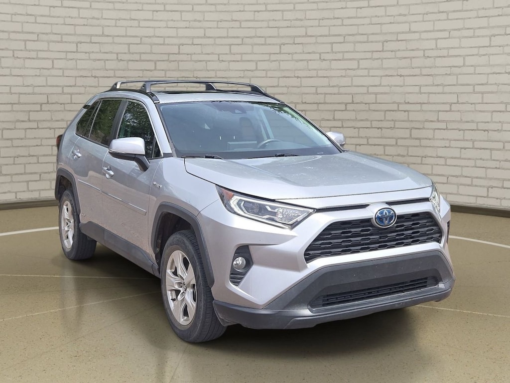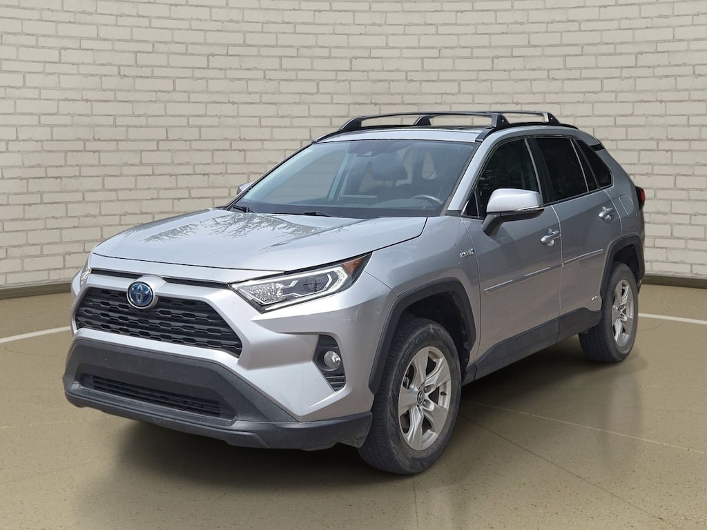 Discover the 2020 Toyota RAV4 Hybrid XLE: a sleek, silver SUV designed for drivers who value efficiency, advanced safety, and all-weather capability in every journey.